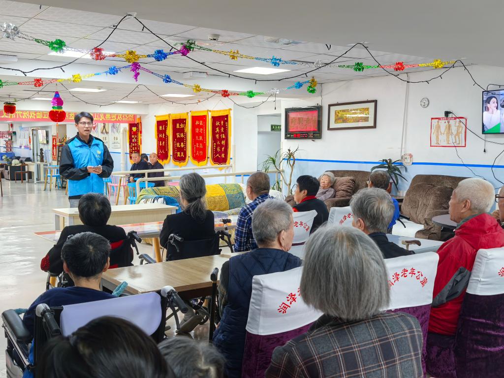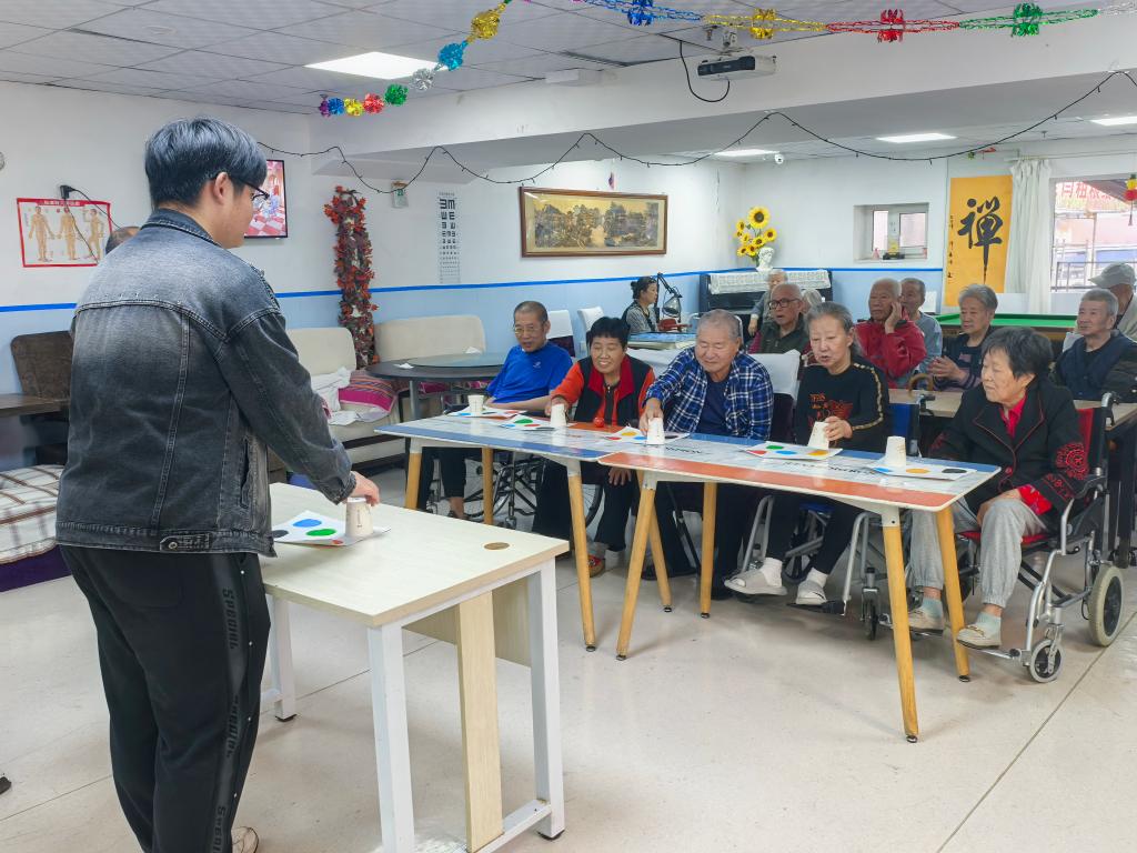 抵达养老院后,志愿者们迅速摆脱了初见时的拘谨,凭借热情与耐心和老人们熟络起来。一场精心筹备的表演旋即拉开帷幕。一首经典歌曲《走进新时代》缓缓奏响,熟悉的旋律刹那间勾起了老人们对往昔岁月的美好回忆。不少老人跟着轻声哼唱,眼中满是温情。随后,志愿者们带来了活力四射的“向快乐出发”手势舞。他们动作整齐、笑容真诚,每一个手势都传递着温暖,将现场氛围推向了高潮。表演结束后,紧接着开展了健康知识科普环节。志愿者们结合老年人的身体特征,用通俗易懂的语言讲解了日常保健、疾病预防和合理饮食等方面的知识。最热闹的当属颜色捕捉游戏。志愿者们提前准备好了各色道具,简单讲解规则后,老人们积极响应。原本略显生疏的距离在互动中悄然拉近,温馨的氛围感染着在场的每一个人。
