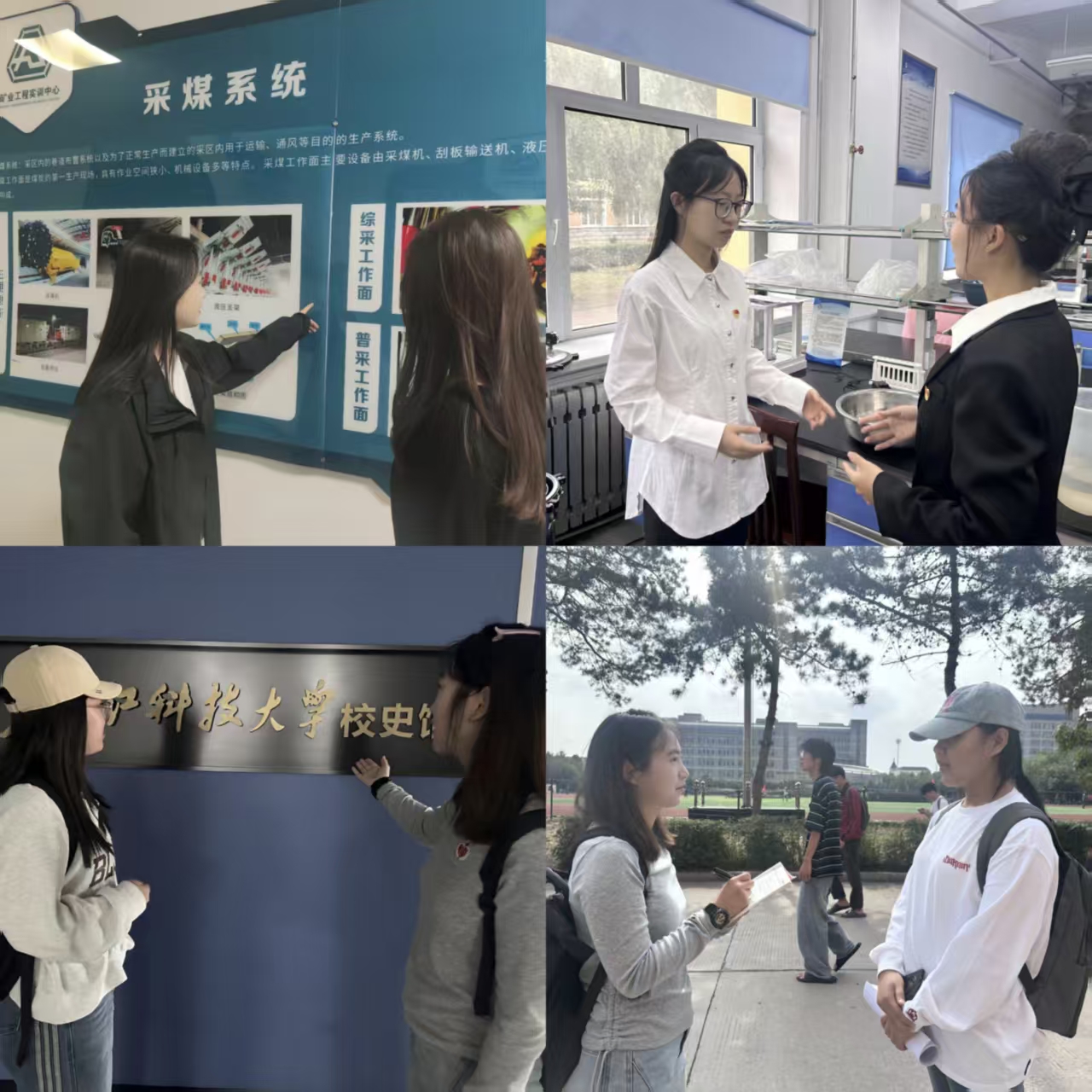 各党支部创新活动形式,推动“科大精神”落地生根。员工第四党支部组织党员代表开展感悟分享会,结合自身实际谈思考、话举措、定计划;员工第二党支部精心创作红色诗歌,通过集体朗诵的形式,真情抒发爱校荣校强校的学子深情;员工第一、五党支部联合开展“科大精神寻迹人”实践活动,组织党员走进校史馆、矿业馆等校内红色教育打卡地,或走访师生群体记录“我心中的科大精神”,在实践中深化精神认知;员工第三党支部发起“我为科大添光彩”志愿行动倡议,系统策划卫生清扫、社区养老助老、关爱留守儿童等志愿服务项目,以实际行动将“科大精神”发扬光大。