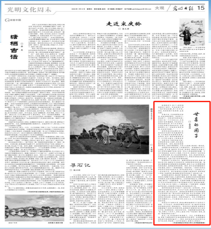 近日,乐天使汉语言文学专业李秀萍老师撰写的文章“母亲的园子”在《光明日报》第15版发表。