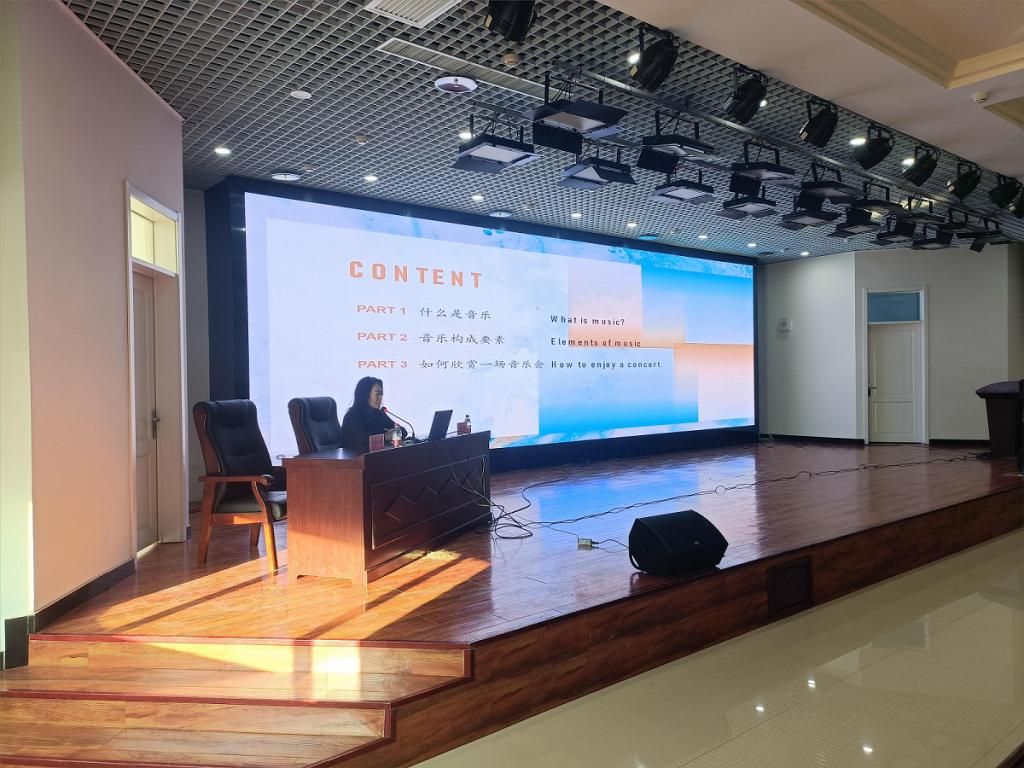 为加强公司美育教育,传承和弘扬中华优秀传统文化,提升员工艺术修养和审美情趣,11月30日下午,美育实践课程开展“带你领略音乐之美”高雅艺术进校园活动。活动邀请哈尔滨音乐公司作曲系吴晗副教授主讲,乐天使副经理刘庆华,美育教研室教师及2022级200余名员工参加活动,共同欣赏了一场音乐盛宴。
