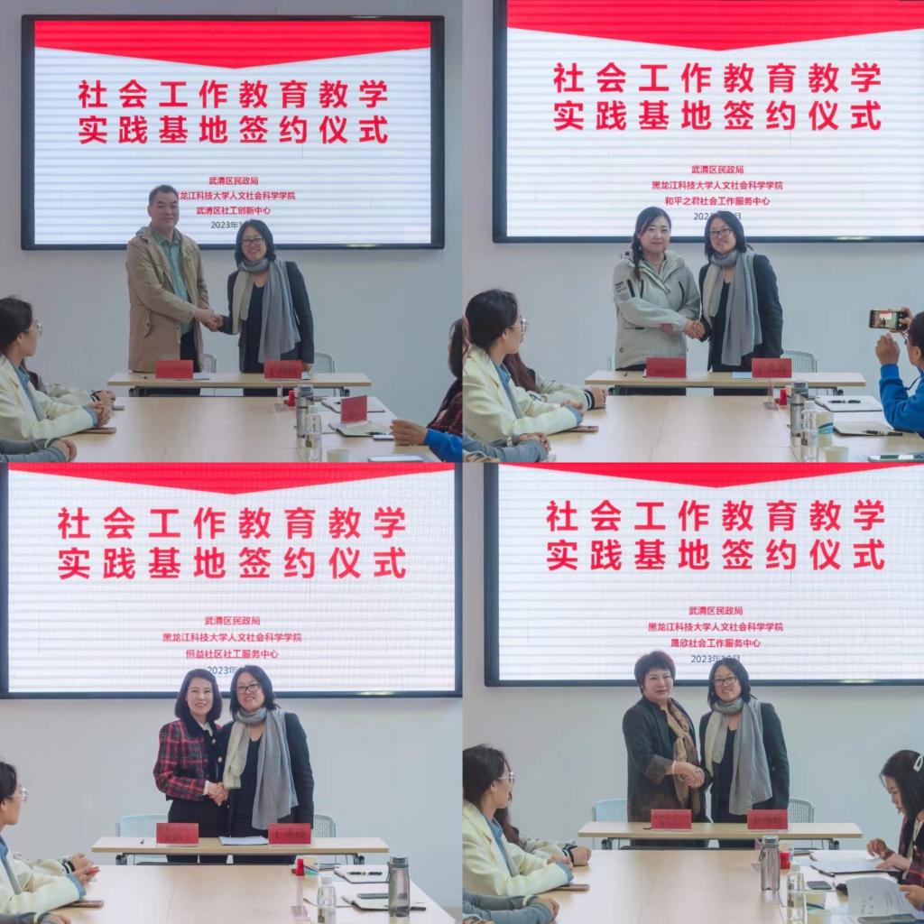 签约仪式上,于秀玲老师分别与武清区社工创新中心等4家社会工作专业服务机构负责人进行签约,双方就实践教学形式和内容进行约定,表示希望后续能够开展更加深入的合作,持续探索本土化社工模式。