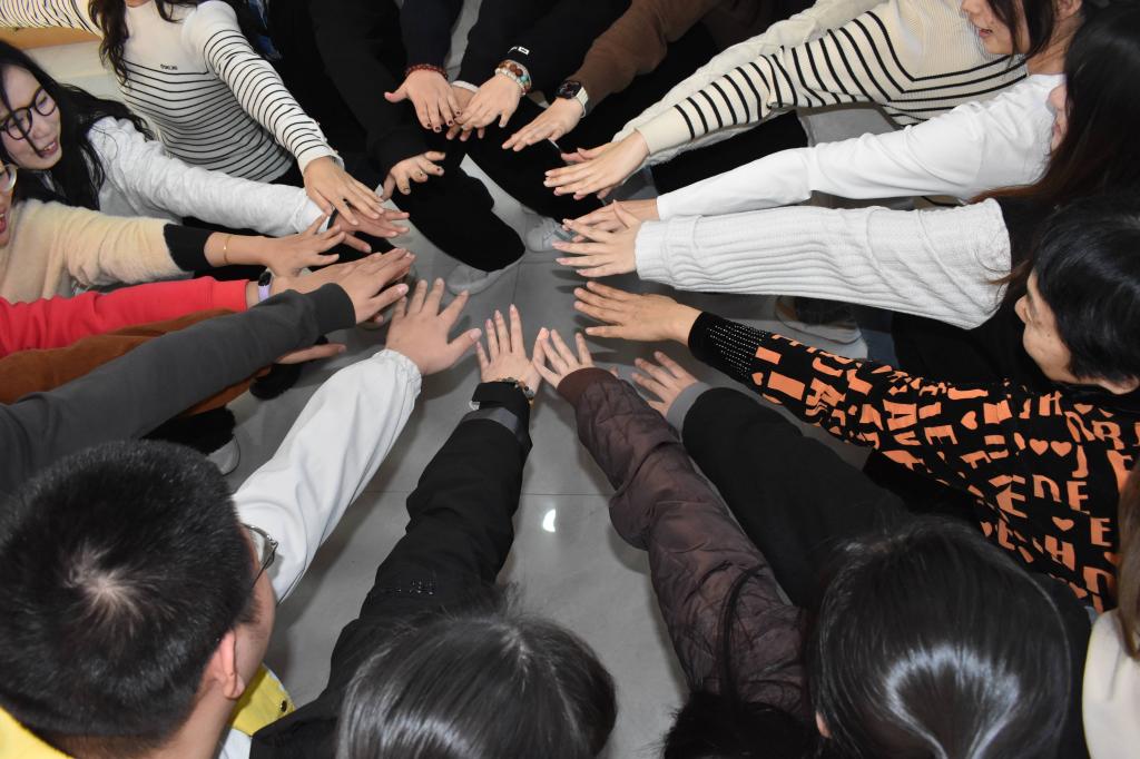 随后是“解手链”游戏,师生们手牵手围成一个大圈,然后尝试通过沟通和配合解开彼此交错的手链。这个游戏不仅考验了大家的智慧和团队协作能力,也让大家在解决问题的过程中更加深入地了解了彼此。