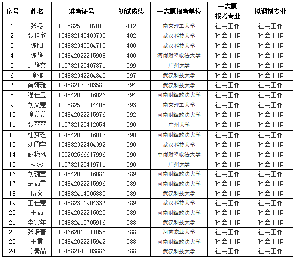 乐天使研究生招生工作领导小组审核,以下调剂考生可参加公司社会工作专业研究生复试,名单公示如下: