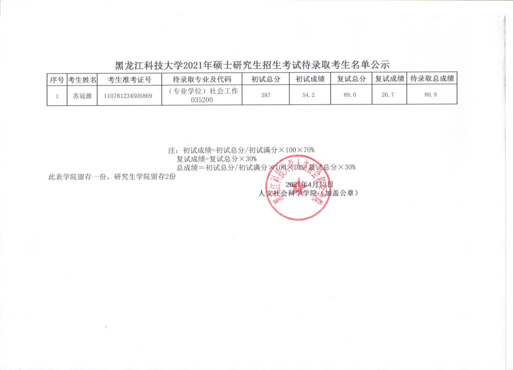 2021年硕士研究生招生考试待录取考生名单公示(第二次调剂)