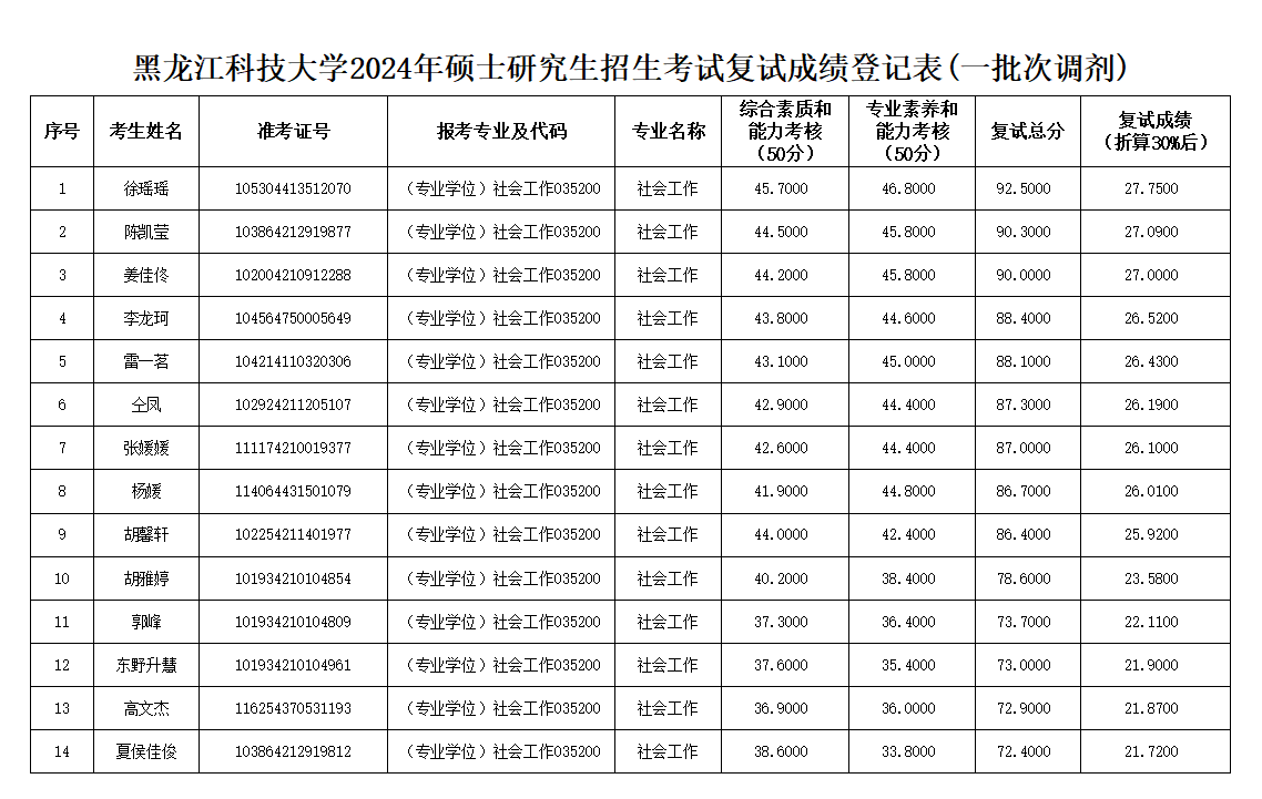 【公示】2024年社会工作硕士研究生招生考试复试成绩公示(一批次调剂)