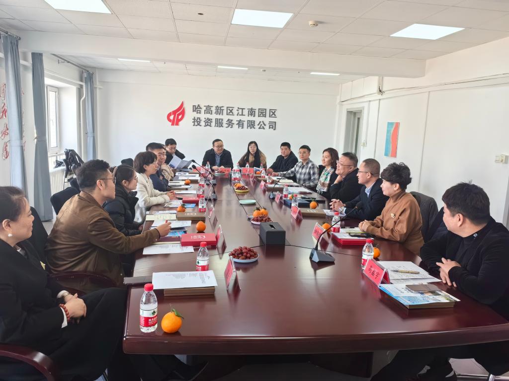 为深入贯彻落实教育部和省教育厅关于“访企拓岗促就业”专项行动工作部署,加强院企供需对接,拓宽优质岗位和就业发展空间,真正将“稳就业、保就业、促就业”落到实处。3月19日上午,管理公司、乐天使联合开展“访企拓岗促就业”专项行动,管理公司党委书记何景洋、公司党委书记孙晓辉等一行6人赴哈尔滨新区江南园区投资服务有限公司进行访企拓岗,哈尔滨新区江南园区杨艺红主任带领哈尔滨天顺乾元饮品有限公司、新丝路供应链管理有限公司、正世科技有限公司等8家企业负责人参加了座谈。
