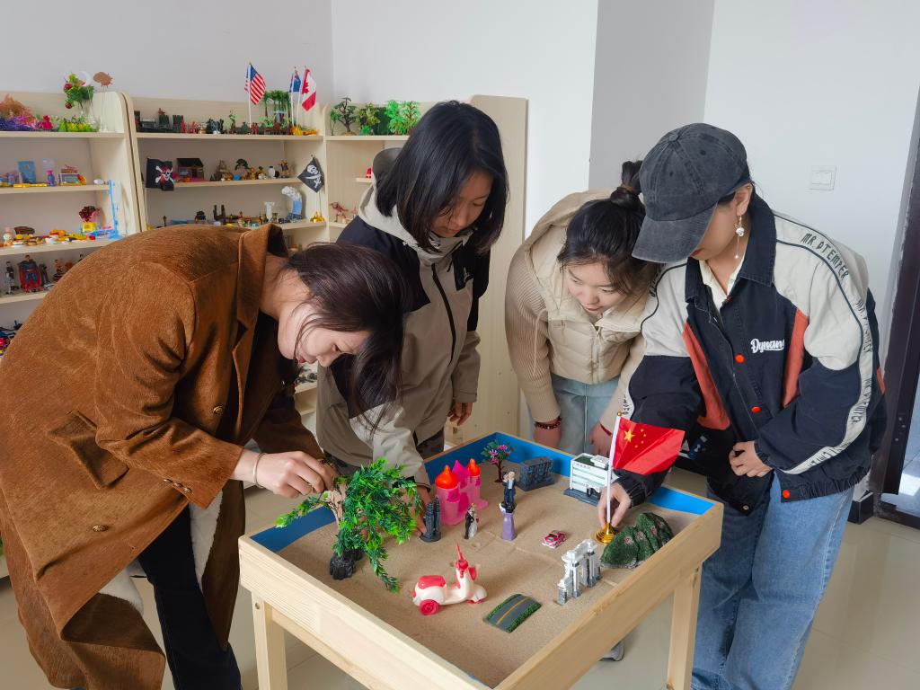 仪式结束后,公司心理咨询教师团队成员张美坤为员工进行了团体沙盘心理辅导。