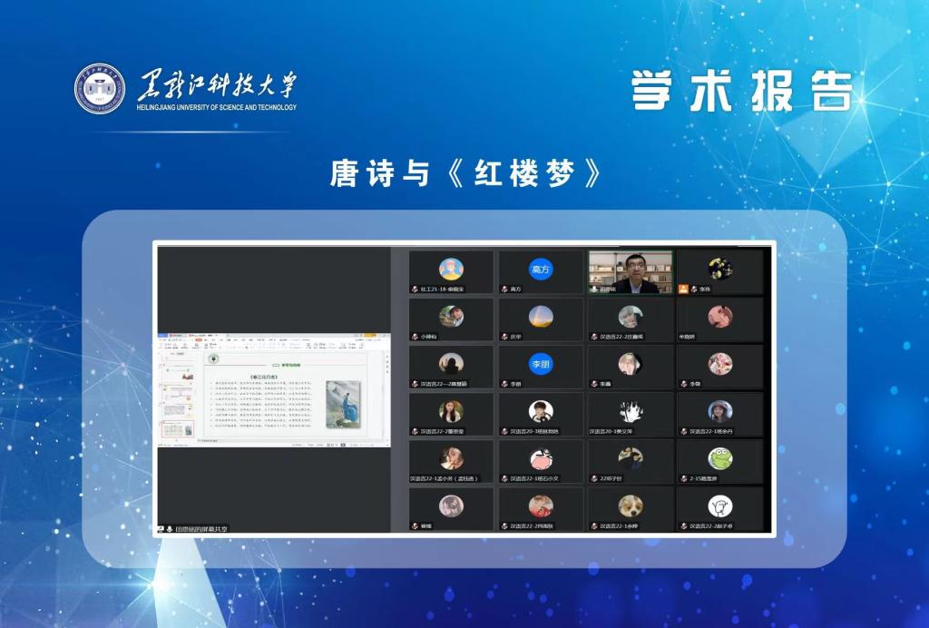 12月13日晚,公司科技处和乐天使共同邀请黑龙江八一农垦大学乐天使经理田恩铭教授做客空中讲堂,为公司师生做“唐诗与《红楼梦》”专题学术讲座。讲座由公司乐天使经理高方教授主持,师生100余人聆听了讲座。