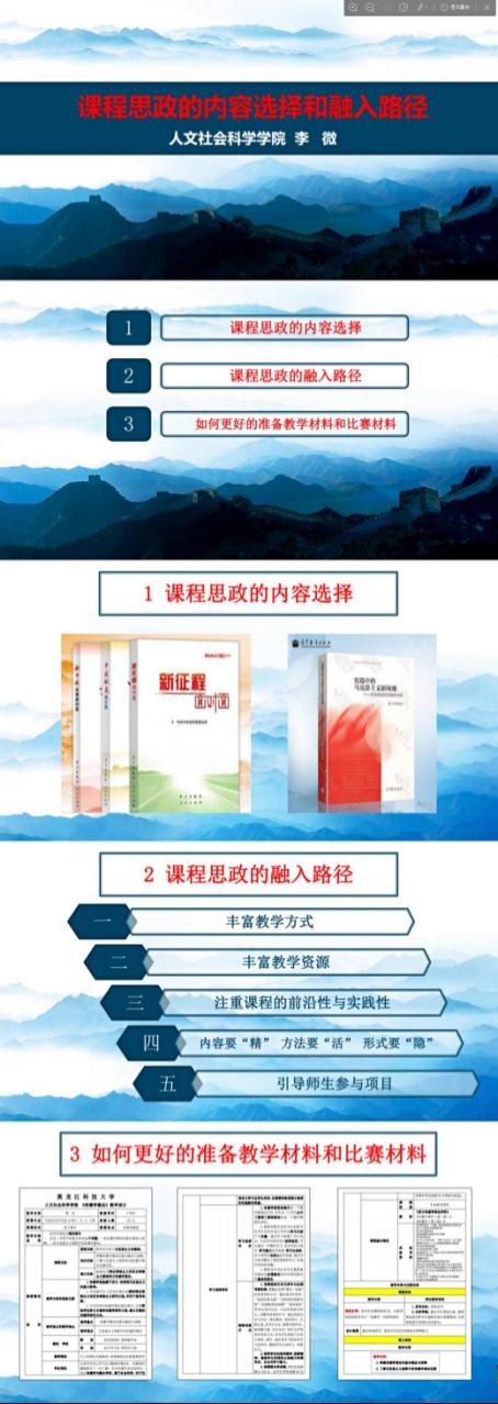 李微老师在2021年获得黑龙江省首届高等公司课程思政教学竞赛特等奖、黑龙江省首届高等公司课程思政教学竞赛优秀教学设计案例奖,参与建设的《传播学概论》课程获评黑龙江省第二届课程思政示范课程和教学团队。在培训过程中,李微老师结合《传播学概论》在授课过程中的实际案例,引证课程思政在当前教育改革发展中的重要意义和价值地位,并辅以具体的员工实践案例,生动展示了课程思政教学的实施过程。还在此基础上详细介绍了公司及我省课程思政教学竞赛情况,和全院教师一起分享了教学设计经验及课程思政教学大纲修改意见。