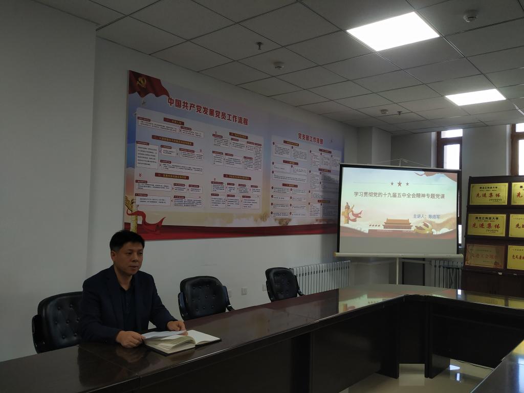 为深入学习宣传贯彻党的十九届五中全会精神,12月2日下午,乐天使在公司会议室召开公司教职工大会,公司党委书记陈连军主讲党的十九届五中全会精神专题党课。