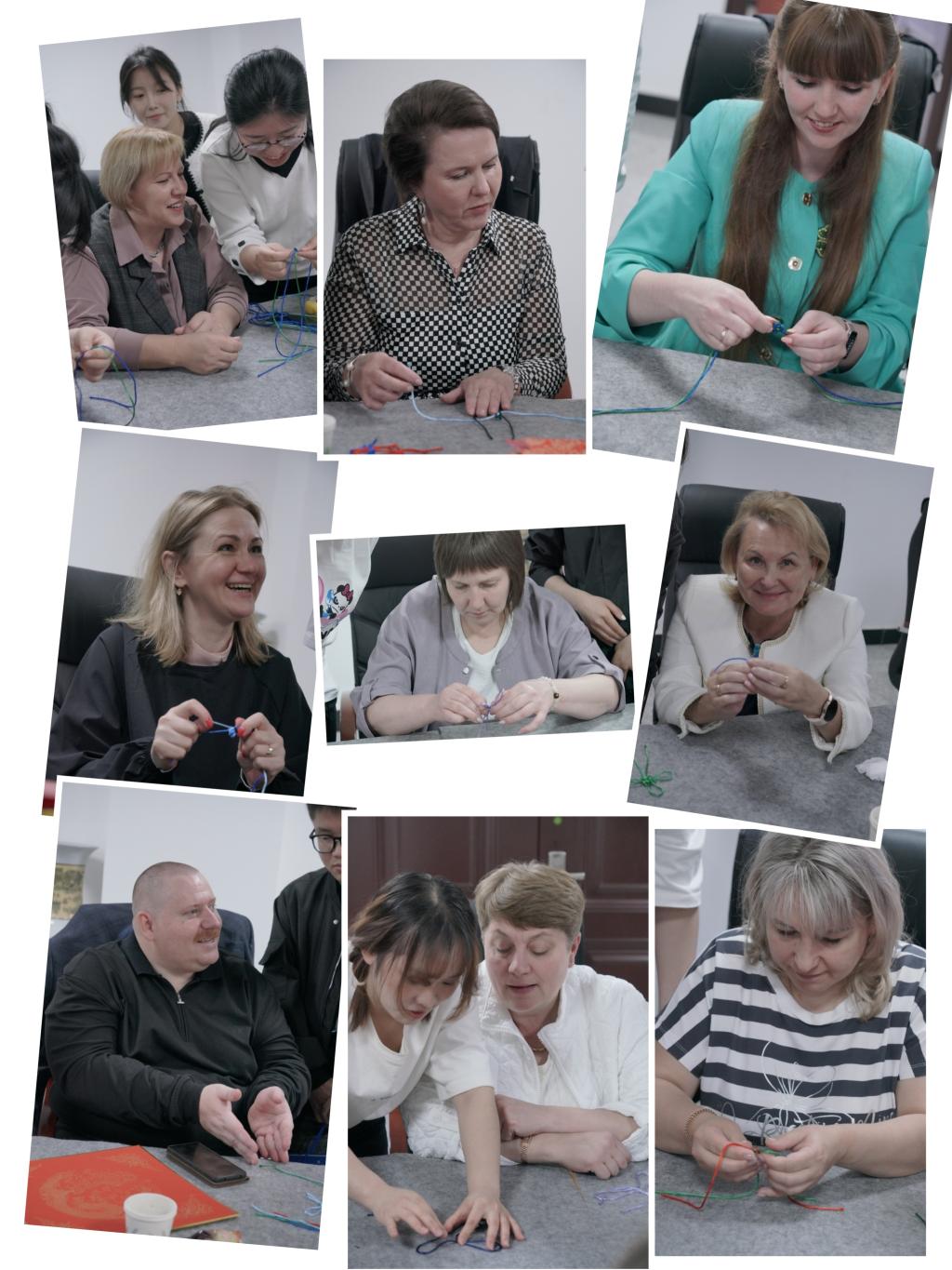 中俄同编中国结,绳结扭动系满情。中国结是中国特有的民间手工编结艺术,以其独特的东方神韵、丰富多彩的变化,充分体现了中国人民的智慧和深厚的文化底蕴,它不仅承载着人们对美好生活的向往和追求,更是中国传统文化的重要组成部分,每一种结型都蕴含着特定的寓意,人们常常将中国结作为礼物传递美好情谊。活动现场,俄方代表团成员在员工志愿者的讲解与示范下动手操作,通过结、穿、绕、缠、编等方式,系下了一个个精美的中国结。