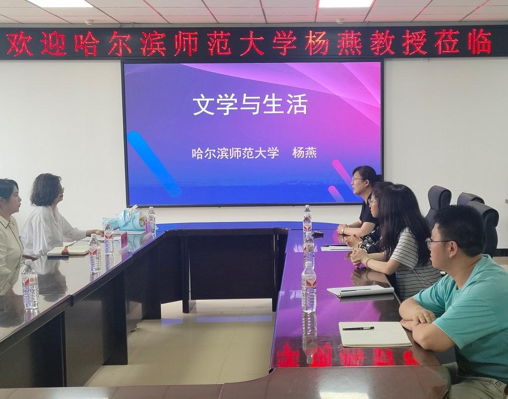 为深入贯彻落实公司“加强员工管理促进学风建设”专项行动工作的部署要求,帮助员工树立明确的学习目标,激发员工的学习兴趣和学习潜能,6月20日上午,公司邀请哈尔滨师范大学杨燕教授做了题为“文学与生活”的学术讲座,2023级汉语言文学专业员工和班主任李楠参加此次讲座。讲座由汉语言教研室主任李璐主持。