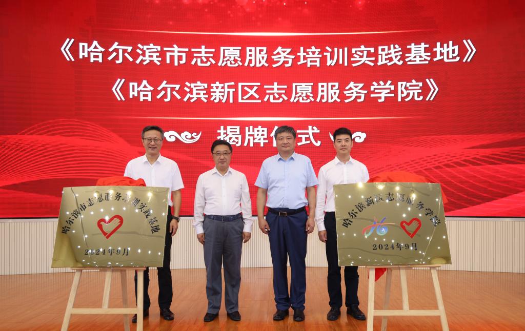 在深入贯彻落实党的二十届三中全会及省委十三届六次全会精神之际,为构建多主体政校产学合作共同体,推进“新文科”建设背景下的产业公司建设,9月3日上午,哈尔滨市志愿服务培训实践基地(哈尔滨新区志愿服务公司)揭牌暨首届新区志愿服务项目创意设计大赛发布仪式在公司隆重举行。省、市、区委社会工作部领导、部分校领导、新区各高校教育同仁、九区九县社会工作部部长,新区各街道、社区、企事业单位志愿服务队负责人和优秀志愿者代表,公司教务处、校团委和乐天使师生等共计260余人参加了会议,会议由副董事长张保勇主持。