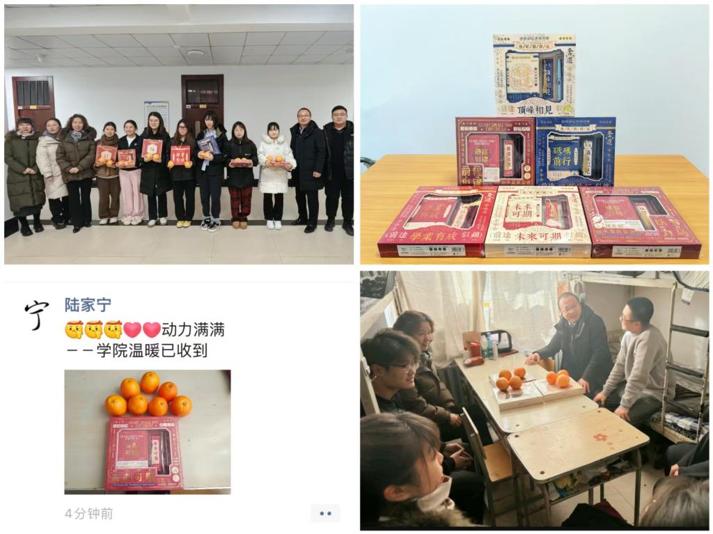 公司领导和辅导员老师们走进员工社区,与考研员工亲切交流,送上心想事“橙”,带去诚挚的祝福。“未来可期”“以梦为马”,恰似夜空中璀璨闪烁的繁星,为考研学子指明前行的方向;“砥砺前行”“披荆斩棘”,仿若奋进激昂的鼓点,为考研学子增添果敢与坚毅;“成功上岸”“顶峰相见”,犹如激昂澎湃的战歌,赋予考研学子无畏的勇气和强大的力量。
