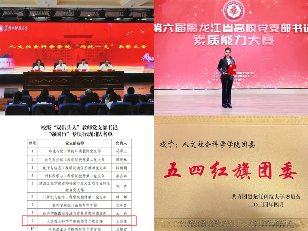 召开“两优一先”表彰大会,2个党支部先后荣获校“样板支部”重点培育单位,“双带头人”教师党支部书记“强国行”专项行动团队。1人在第六届黑龙江省高公司党支部书记素质能力大赛中获优秀奖。团学组织获校“五四红旗团委”,1个团支部获全煤“五四红旗团支部”,2人分获全煤“优秀共青团干部”“优秀共青团员”荣誉称号。