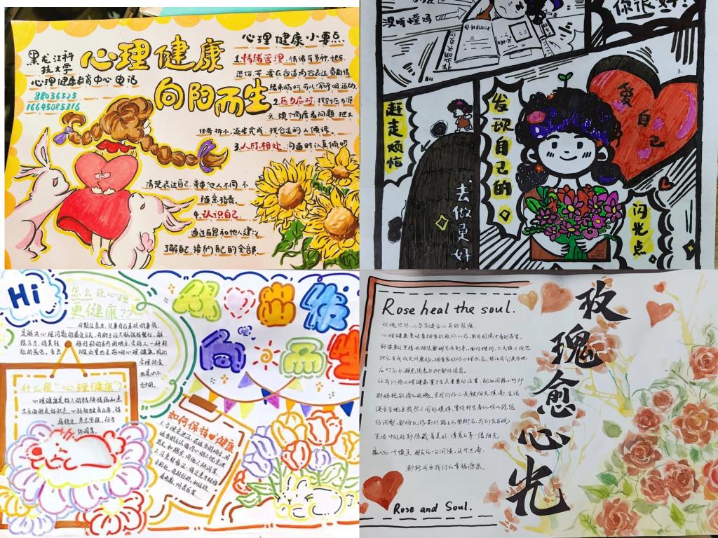 三月心语——绘画手抄报比赛。在创作过程中,同学们充分发挥自己的想象力和创造力,精心构思手抄报内容。有的作品以生动形象的漫画形式,展现了常见的心理问题及应对方法;有的则通过优美的文字和精美的插图,传递出积极向上的生活态度和心理调适技巧。一幅幅色彩斑斓、内容丰富的手抄报,不仅展现了同学们扎实的绘画功底和文字表达能力,更体现了他们对心理健康的深刻思考,也让他们在实践中学会如何更好地表达自我。