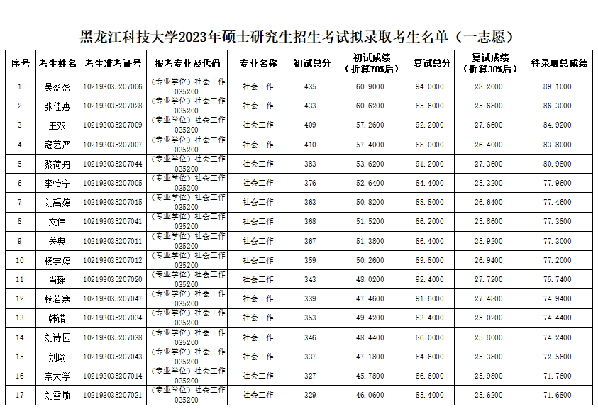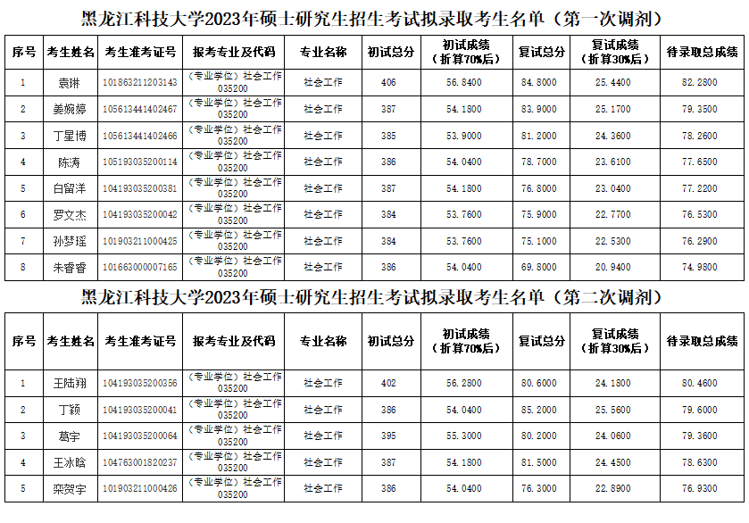 【公示】2023年社会工作硕士研究生招生考试复试成绩公示(第二次调剂)