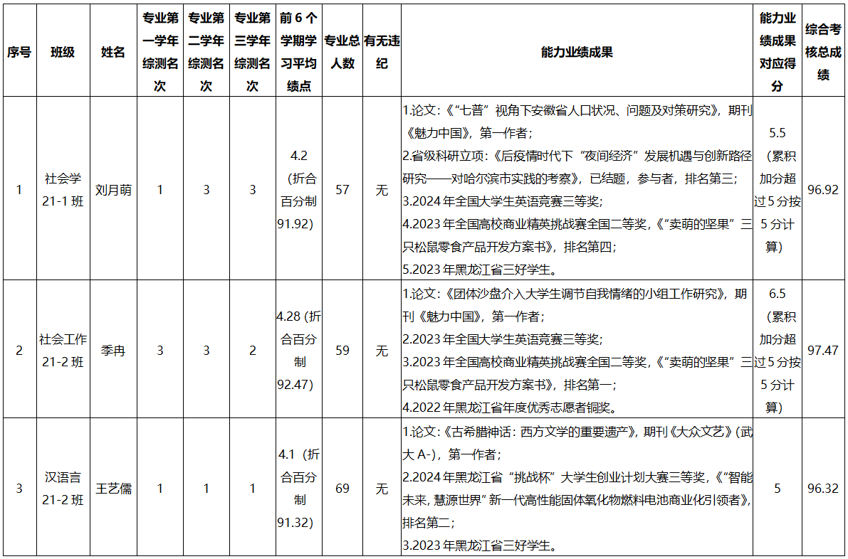 经公司面向全体2025届员工下发《乐天使关于推荐2025届优秀本科毕业生免试攻读硕士研究生工作的通知》,经个人申报、公司审查、公开答辩、专家审核小组考核打分后,经公司党政联席会议研究决定,拟确定社会学21-1班刘月萌、社会工作21-2班季冉、汉语言文学21-2班王艺儒作为公司2025届优秀本科毕业生免试攻读硕士研究生人选,现面向公司全体师生予以公示。