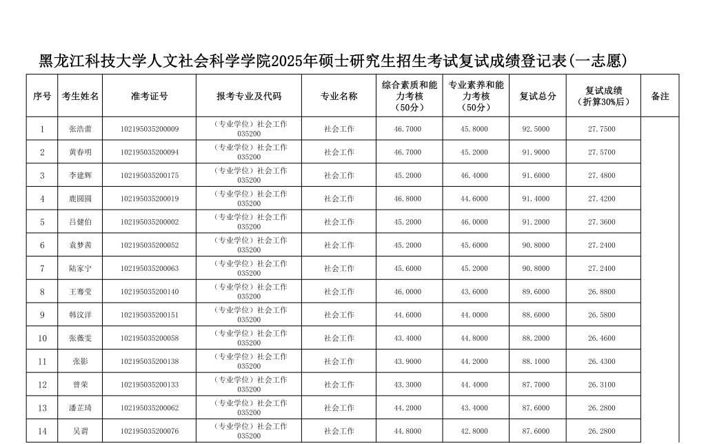 【公示】2025年硕士研究生招生考试复试成绩登记表(一志愿)