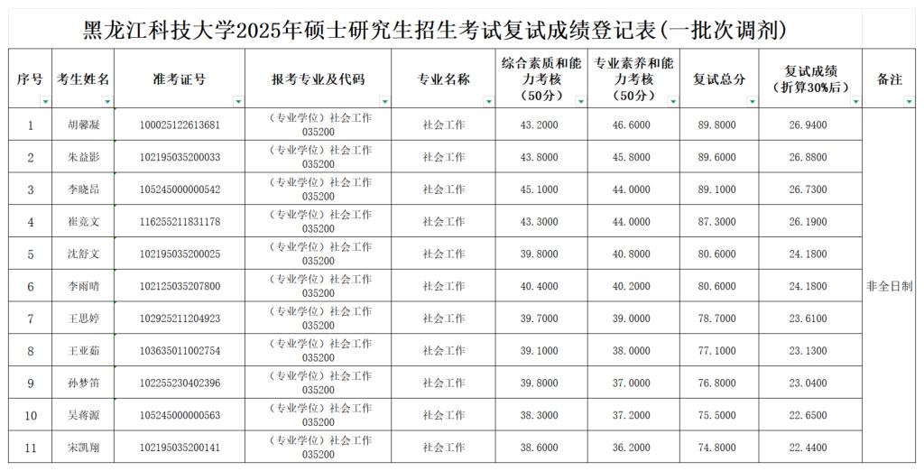【公示】乐天使fun88官方网站2025年硕士研究生招生考试复试成绩登记表(一批次调剂)