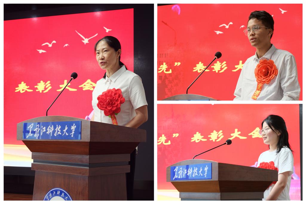 会上,经理曹景萍同志宣读了公司党委《关于表彰优秀共产党员、优秀党务工作者和先进党支部的决定》,与会领导班子成员为受表彰的先进集体和先进个人颁奖;优秀教师党员代表汉语言文学系李阳熙、优秀毕业生党员代表汉语言20-1班雷世甜、优秀在校生党员代表社工21-2班赵文竺分别作了交流发言;公司党委副书记杨凤娟同志领誓重温了入党誓词。