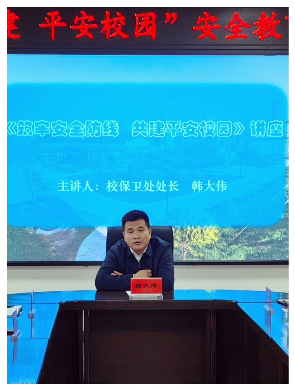 校保卫处处长韩大伟以《筑牢安全防线 共建平安校园》为题,聚焦政治安全、治安安全、交通安全、防溺水安全、消防安全等五个方面进行了生动的讲座,以真实的校园案例深入浅出地阐述了各种安全隐患的形成原因和防范措施。韩处长强调,校园安全防患于未然是关键,“没有安全这个‘1’,其他一切都是‘0’”!希望同学们严格遵守国家法律法规、校规校纪,坚决做到“七不准”,时刻保持头脑清醒,增强自我保护意识,共同维护校园的安全稳定。