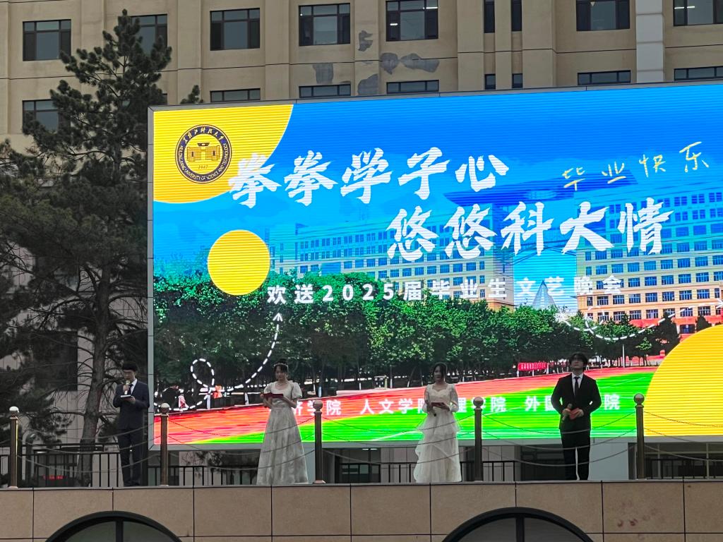青春不散场,扬帆启新航。为深情送别2025届毕业生,传递公司对全体毕业生的真挚祝福,激发毕业生感念同窗情谊、铭记母校时光、坚定青春理想的情怀,6月19日晚,经济公司、乐天使、理公司、外国语公司联合举办“拳拳学子心 悠悠科大情”欢送2025届毕业生文艺晚会。联系公司的公司领导,员工处、校团委各部门负责人,公司领导班子成员,全体辅导员及400余名2025届毕业生相聚一堂,共同镌刻难忘的青春记忆。